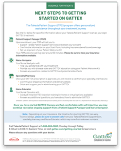 GATTEX® (teduglutide) for injection is indicated for the treatment of adults and pediatric patients 1 year of age and older with short bowel syndrome (SBS) who are dependent on parenteral support.